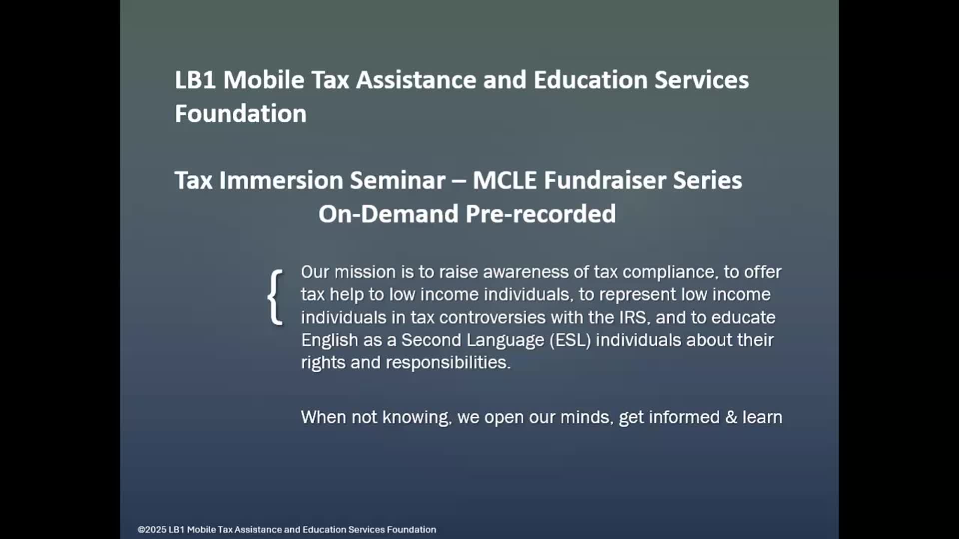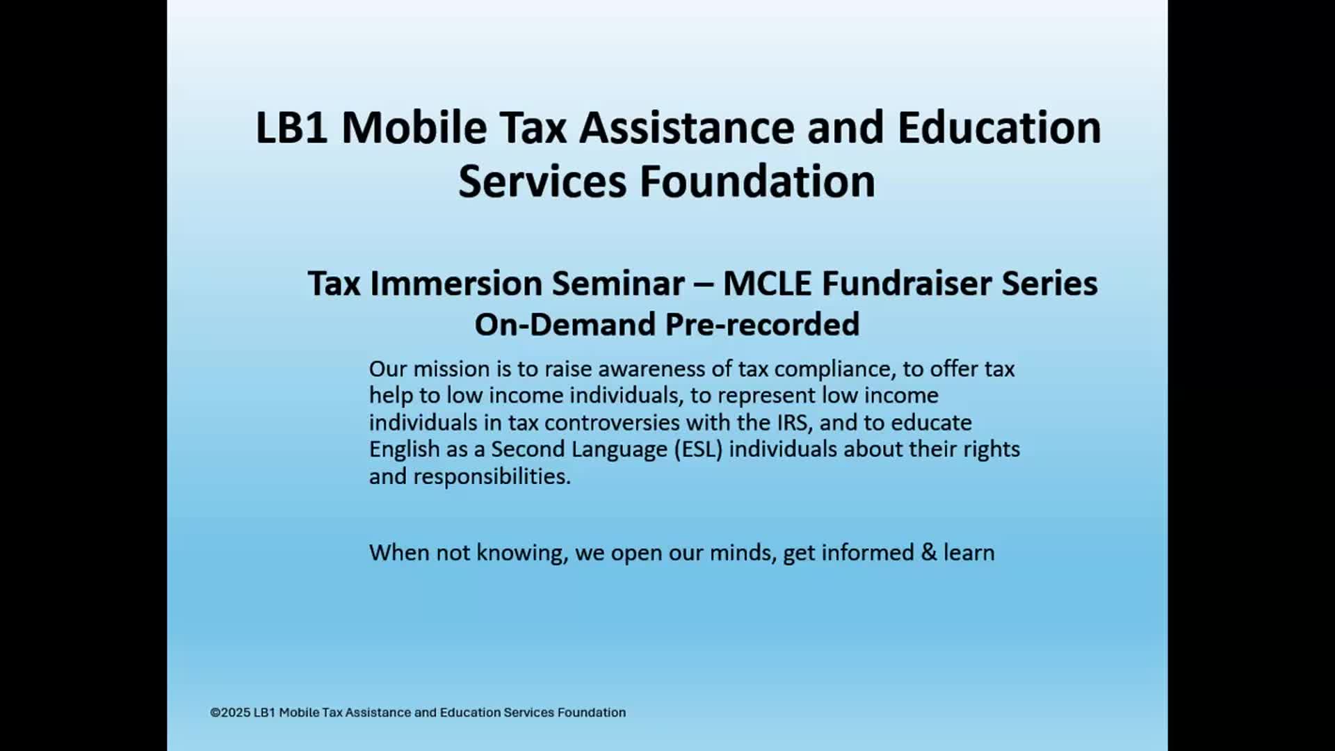 This presentation will provide an overview of IRS letters, how to respond to IRS letters, and the importance of LITCs in tax justice..