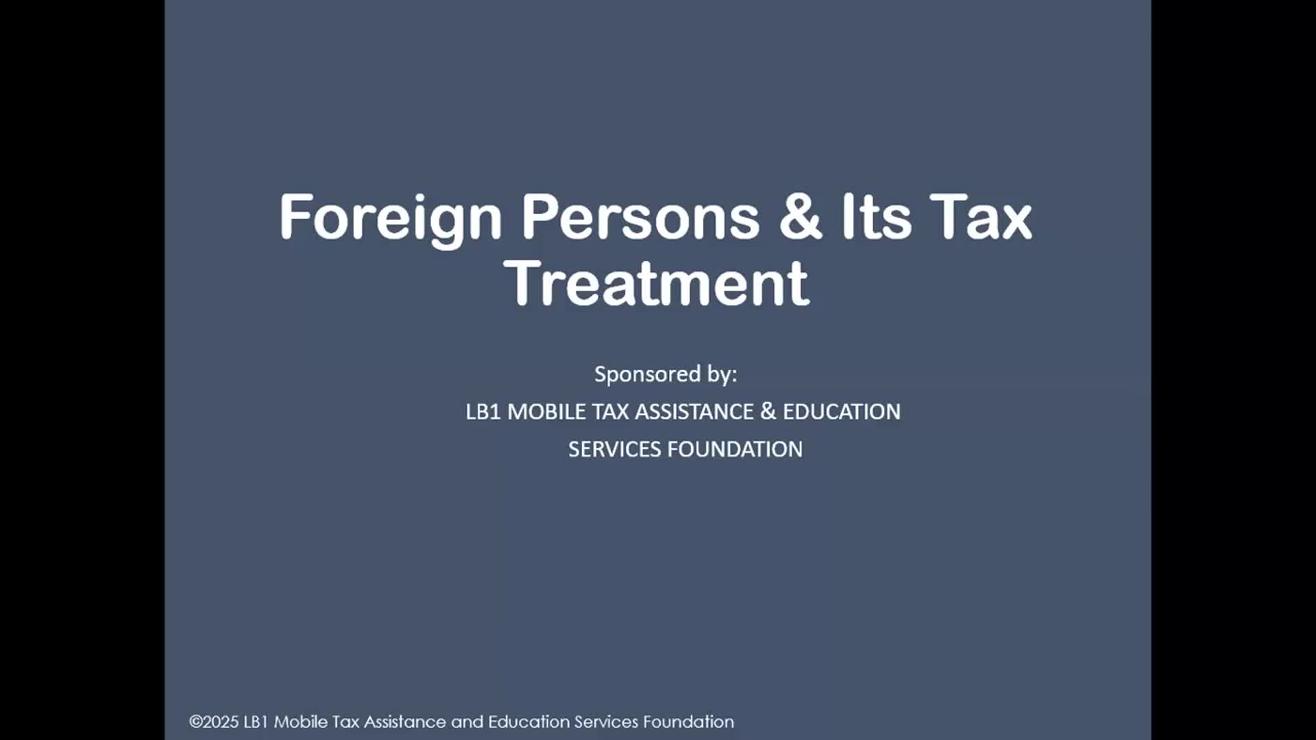 This presentation will provide an overview of foreign persons and its tax treatment.